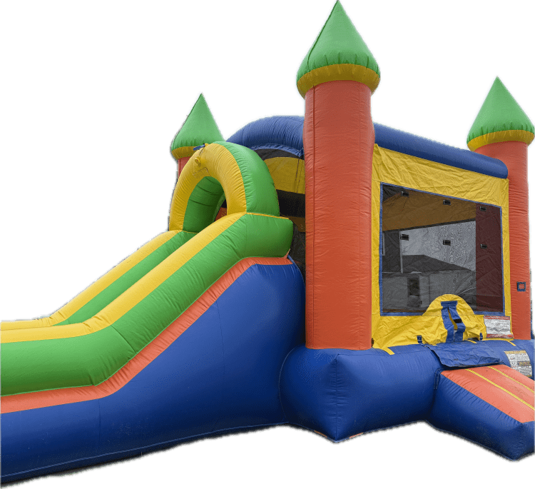 Introducing a new addition to our inflatable rental equipment - the Bounce House Side Slide Combo with Pool! This inflatable ride is guaranteed to provide endless fun for kids of all ages. Featuring a spacious bounce house, a thrilling side slide and a refreshing pool, this combo provides the ultimate entertainment and adventure all in one inflatable. The colorful design and cheerful graphics are sure to catch the attention of your little guests, and keep them entertained for hours on end. Made with high-quality, durable materials, this bounce house combo is built to last and withstand the wear and tear of active usage. It's also equipped with safety features such as secure netting and inflated barriers, ensuring your child's safety while they're having fun. Perfect for backyard parties, family gatherings, or any other occasion, this Bounce House Side Slide Combo with Pool is the ultimate inflatable rental option that will keep children entertained for hours on end. Don’t miss out on the chance to bring some excitement and laughter into your next event.