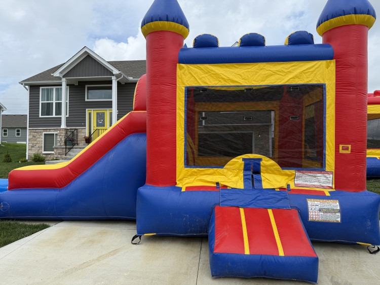 Introducing a new addition to our inflatable rental equipment - the Bounce House Side Slide Combo with Pool! This inflatable ride is guaranteed to provide endless fun for kids of all ages. Featuring a spacious bounce house, a thrilling side slide and a refreshing pool, this combo provides the ultimate entertainment and adventure all in one inflatable. The colorful design and cheerful graphics are sure to catch the attention of your little guests, and keep them entertained for hours on end. Made with high-quality, durable materials, this bounce house combo is built to last and withstand the wear and tear of active usage. It's also equipped with safety features such as secure netting and inflated barriers, ensuring your child's safety while they're having fun. Perfect for backyard parties, family gatherings, or any other occasion, this Bounce House Side Slide Combo with Pool is the ultimate inflatable rental option that will keep children entertained for hours on end. Don’t miss out on the chance to bring some excitement and laughter into your next event.